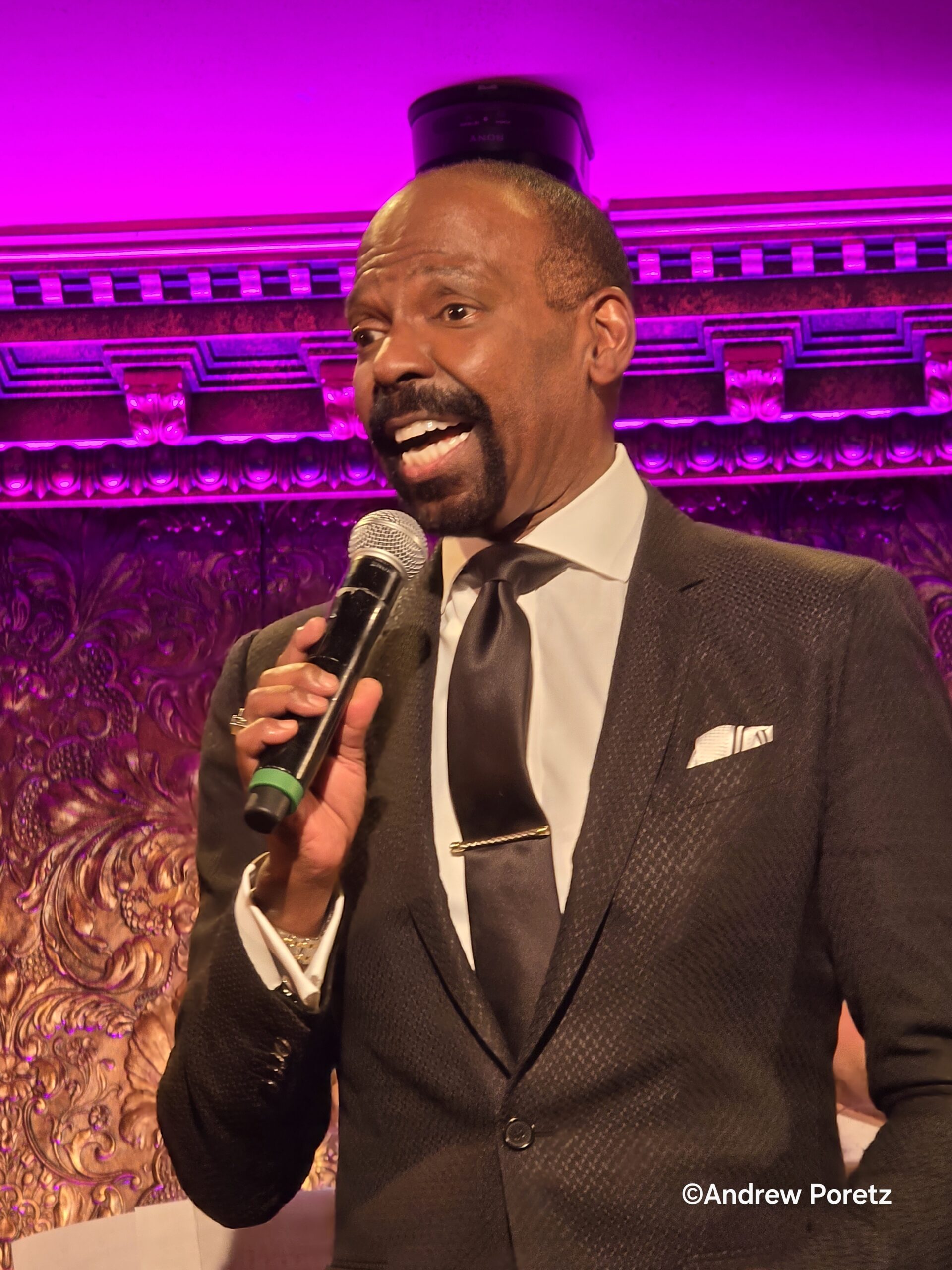 After a video montage, Broadway star T. Oliver Reid opened the show with “Once in a Lifetime” (Anthony Newley, Leslie Bricusse), making his his way to the stage. His dynamic rendition and soaring voice made for a thrilling start. From his banquette seat, the legendary Ben Vereen spoke about his relationship with Davis—then surprised the audience by calling Liza Minnelli on his cell phone and patching her into the sound system. Minelli shared a warm, funny story about Frank Sinatra and Davis, and even sang a few notes before Vereen ended the call. He followed with a brief a cappella line of “I’ve Gotta Be Me” (Walter Marks).