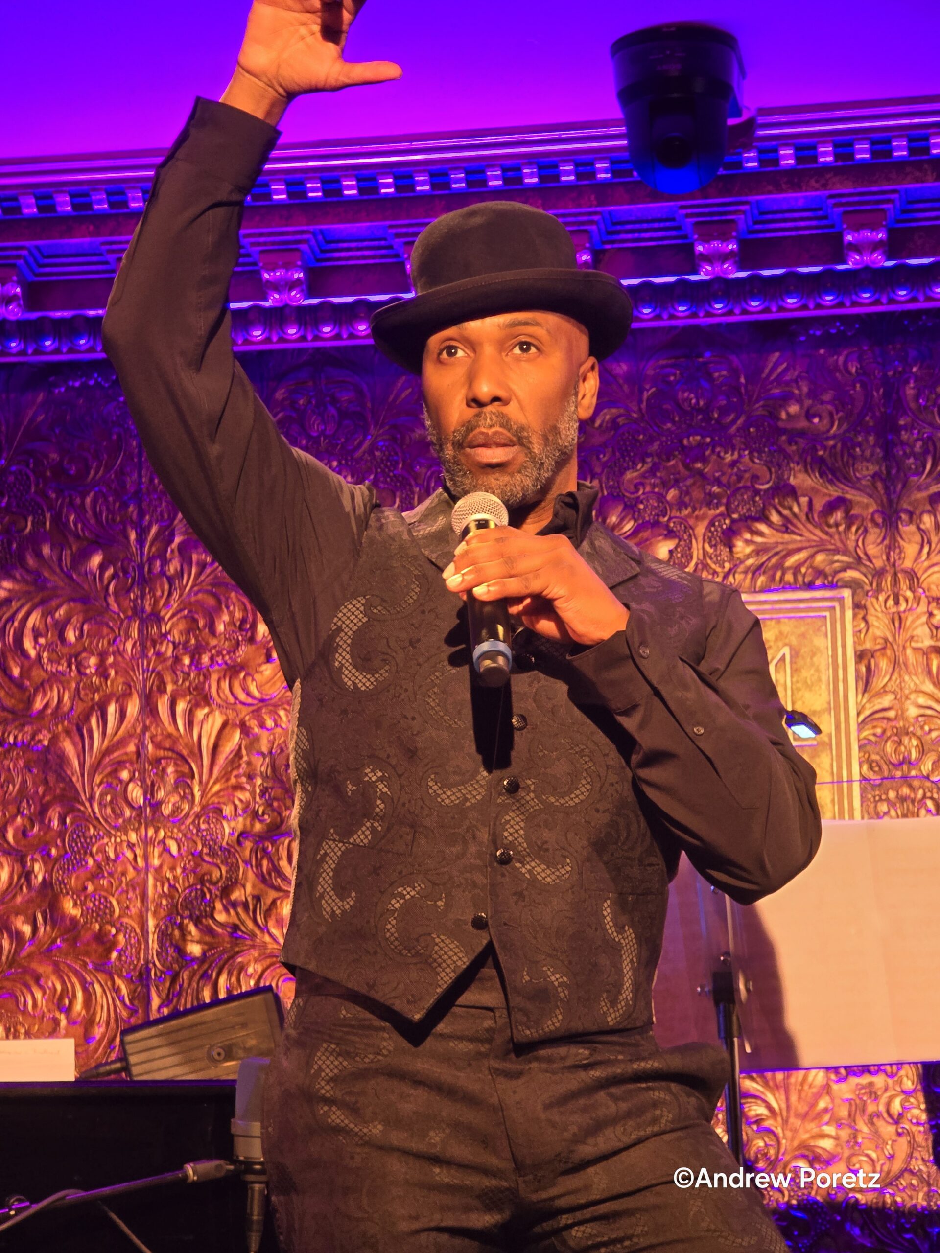 Composer-performer Rupert Holmes, best known for “Escape (The Piña Colada Song)” and the Tony-winning The Mystery of Edwin Drood, delivered a deep-dive moment, recounting Davis’ breakout at Ciro’s nightclub in Hollywood and his groundbreaking role as the first Black performer to impersonate white celebrities, such as Frank Sinatra and Humphrey Bogart. Holmes sang the song Davis had just been hired to record: the title song for 1955’s Six Bridges to Cross (Henry Mancini, Jeff Chandler), when a car accident on his way to the recording studio cost him his left eye.