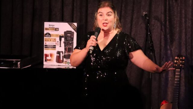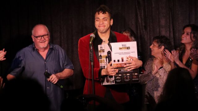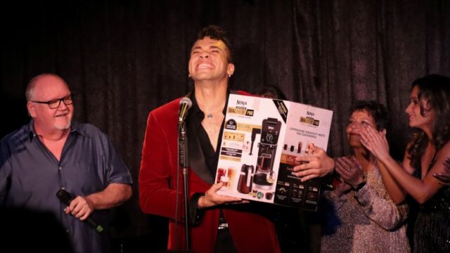 This was Aaron Valentine’s third try at the competition (3x’s a charm)! The winner of Mama’s Next Big Act receives a $1500 stipend towards the production of a cabaret show, a feature article in Cabaret Scenes magazine, a poster and promo card design, a free class at Singnasium, a show poster hung on the DTM Wall of Fame, and this year, a fancy Ninja coffee machine!