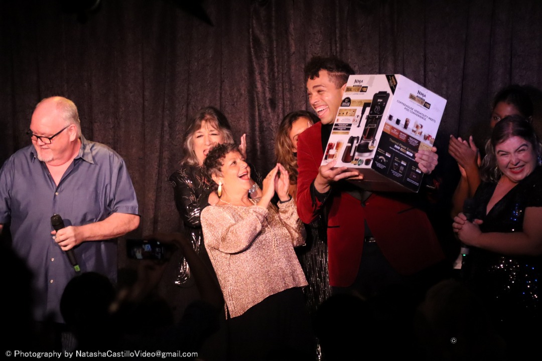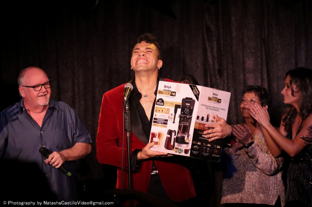 This was Aaron Valentine’s third try at the competition (3x’s a charm)! The winner of Mama’s Next Big Act receives a $1500 stipend towards the production of a cabaret show, a feature article in Cabaret Scenes magazine, a poster and promo card design, a free class at Singnasium, a show poster hung on the DTM Wall of Fame, and this year, a fancy Ninja coffee machine!