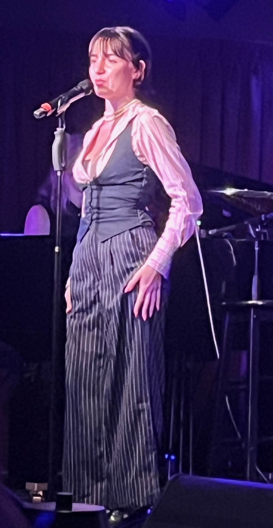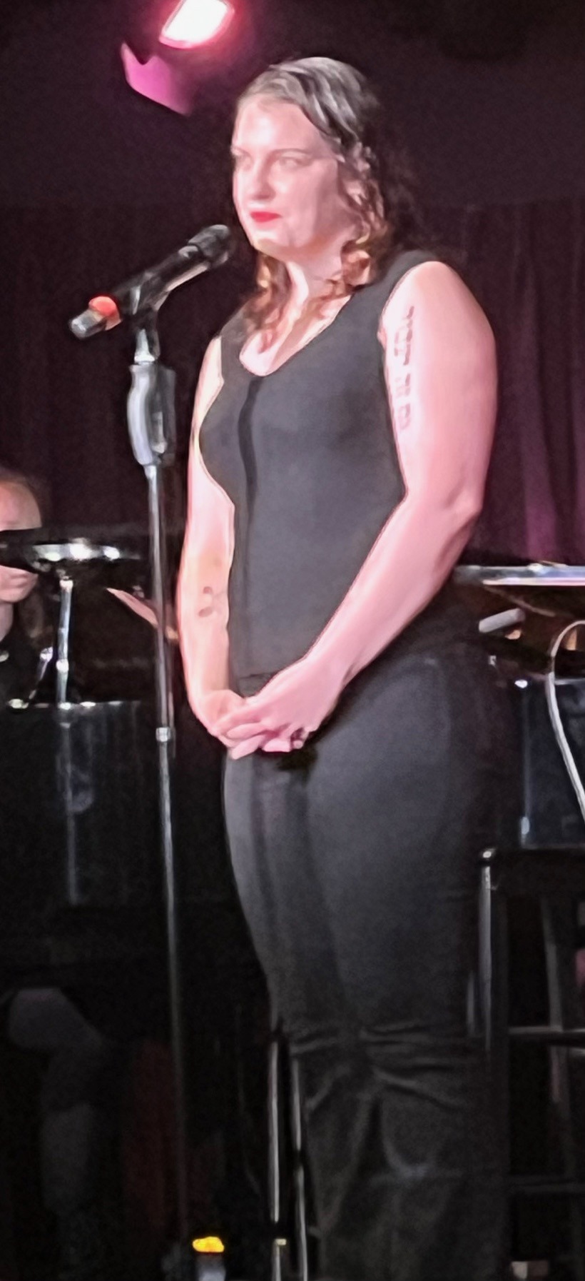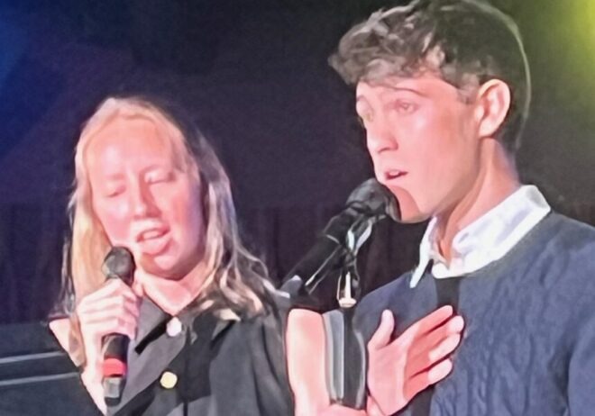 Two top-flight belters were separated by Swetha Vissapragada demonstrating impressive breath control, rattling off the alliterative lyrics of “It’s De-Delovely” with nary a pause, and yet with notable clarity. She was preceded by Hannah Taylor whose clarion voice rattled the walls as she dug into the gospel “Blow, Gabriel, Blow” and followed by Lussi Pearl who assured us that in Cole Porter’s world, “Anything Goes!” with not just power and sexiness, but even a burst of tap dancing to bring the evening to a close.