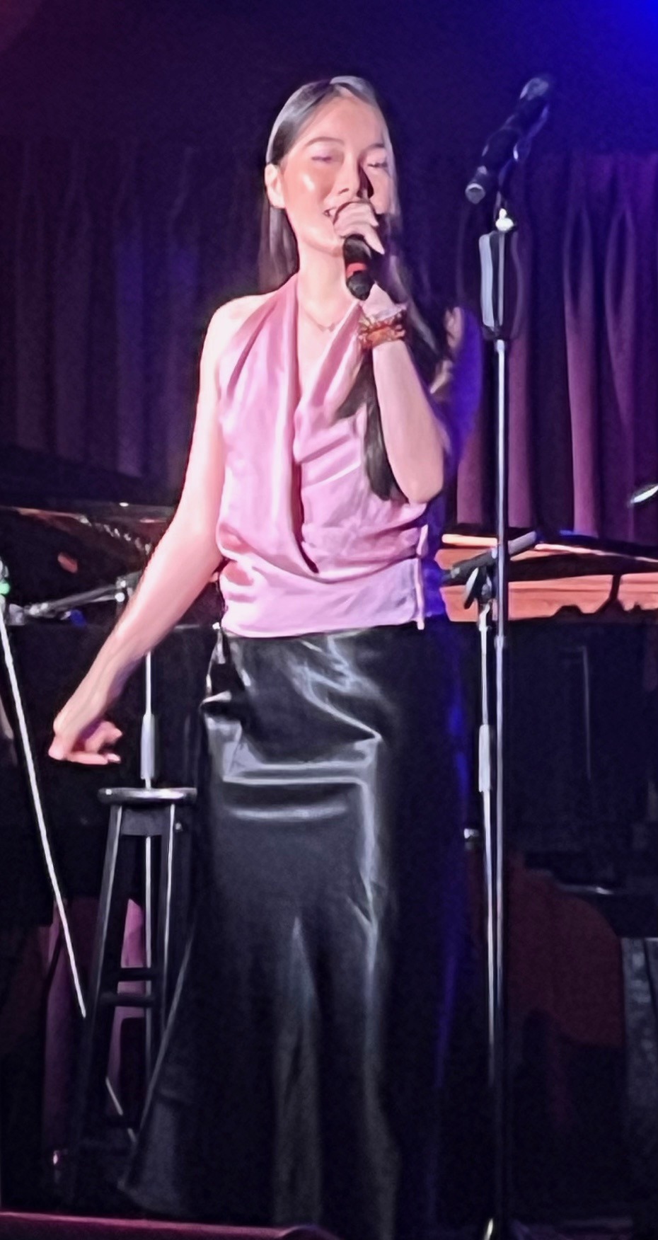 “Miss Otis Regrets” was the only straight-forward comedy number of the evening (a few more would have been welcome), and Hannah Feldstein totally nailed it with perfect timing. The only musical arrangement of the evening not created by Levesque was Harper Xu’s “Night and Day.” As a singer, she