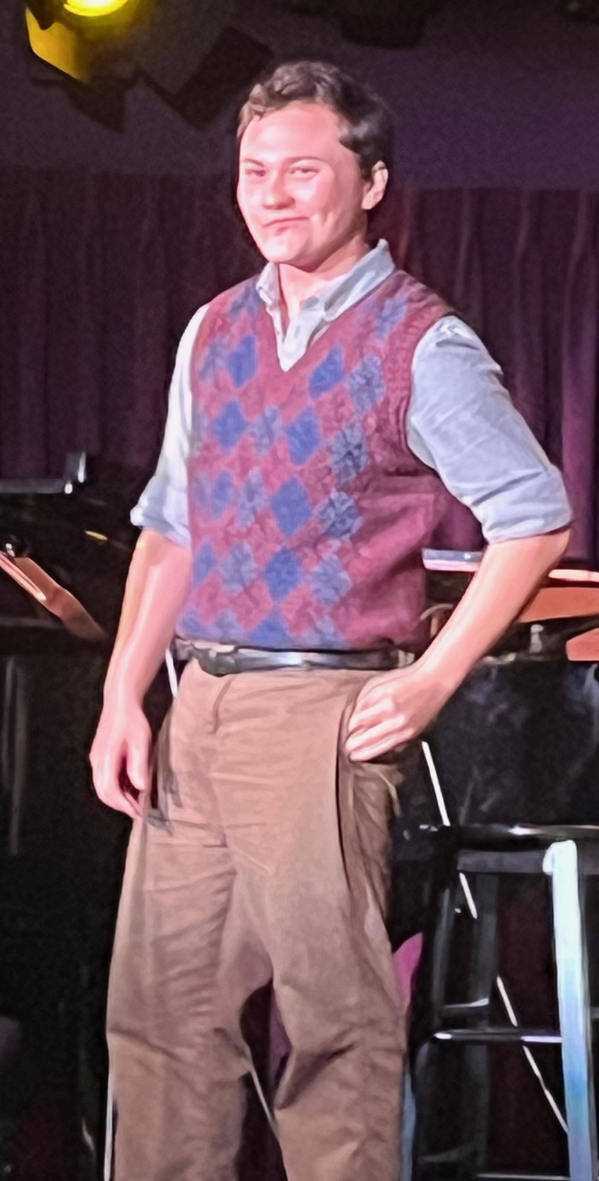 me one of the low points of the night: due to a last minute cancellation Levesque had to step in to join Blake Gioviti for the only duet of the evening with “I’ve Got You Under My Skin.” It was simply under-rehearsed and awkward. The first of several Latin rhythms came with “You’d Be So Nice to Come Home To” as Sophie Smith-Brody relaxed into the eroticism of the number. For something very different, Levesque led her incredibly talented quartet in an instrumental jazz rendition of “All of You.” Marcellis Cutler brought presence and electricity, as well as confident moves, to “Just One of Those Things.”