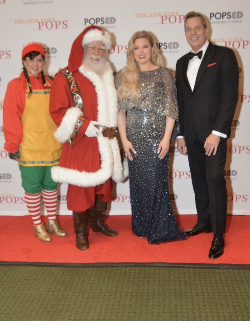 th Clurman, was in itself an impressive sight to behold. The combined instruments and voices for the traditional “Deck the Halls” and “We Need a Little Christmas” (Jerry Herman) created a joyful, mood-setting soundscape for a stirring concert to come. Guest artist, Broadway’s Megan Hilty, swept onto the stage in a whirl of festive red, offering the seasonal classic, “It’s the Most Wonderful Time of the Year” (Edward Pola, George Wyle) and “Winter Wonderland” (Felix Bernard, Richard Bernhard Smith) in her fine operatic mezzo-soprano. And what would a holiday concert be, without, as she declared, the “quintessential Christmas song,” the aptly-named, “The Christmas Song” (Bob Wells, Mel Tormé).